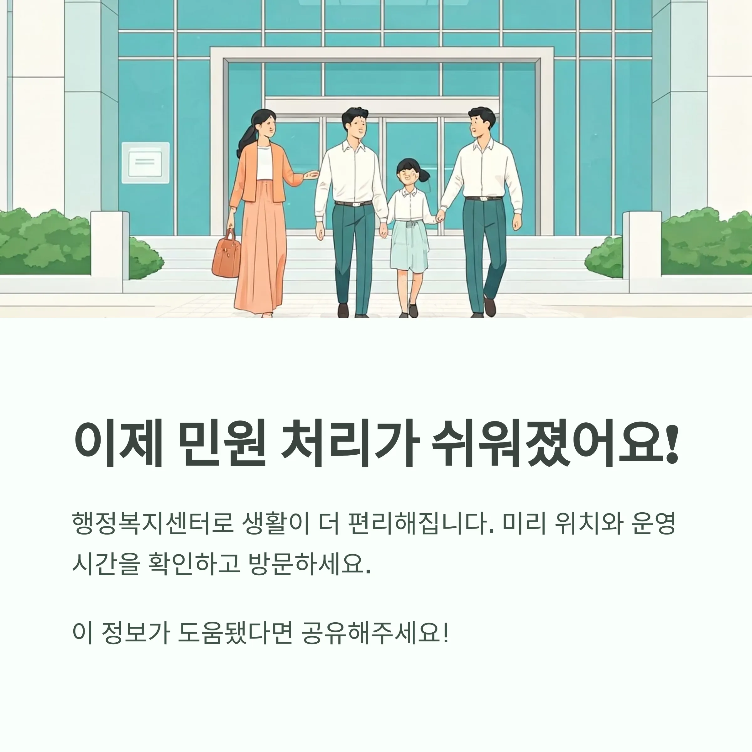 행정복지센터는 생활에 꼭 필요한 행정·복지 업무를 한 번에 처리할 수 있는 동네 공공기관입니다. 평소에 관할 센터 위치와 가능한 업무를 알아두면, 민원 처리 시간을 절반 이상 줄일 수 있어요!